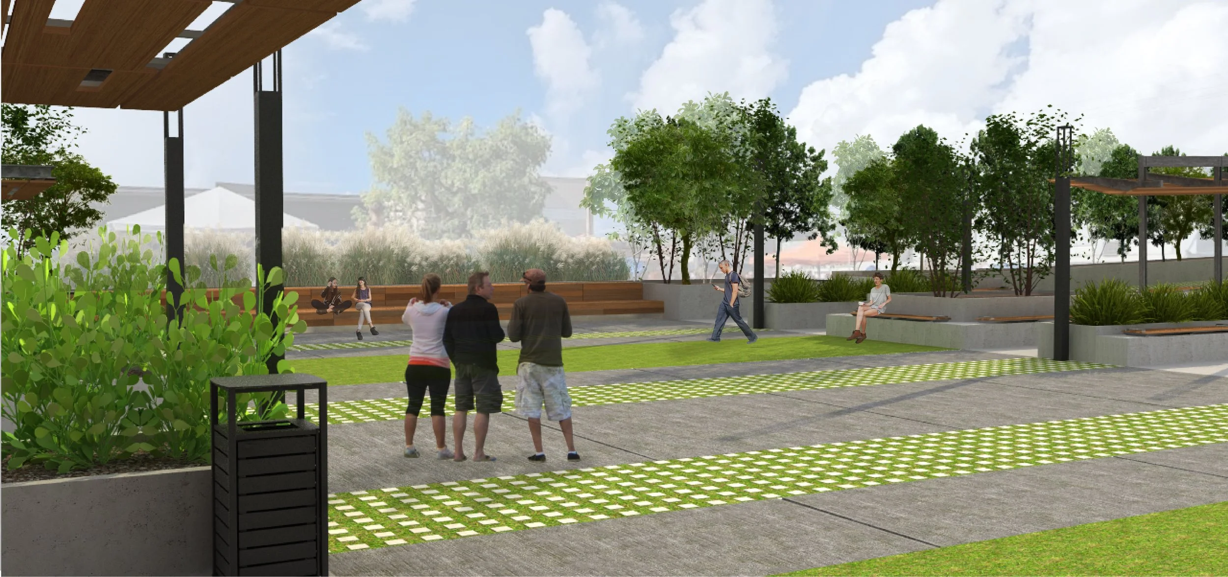 Strategies focused on integrating the existing Ceibas with new plantings of grasses and hedges that bring both movement and structure to the ground plane. The grasses soften the urban setting with texture and motion, while the hedges provide balance and order, creating a contemporary landscape that complements the plaza’s cultural landmarks.